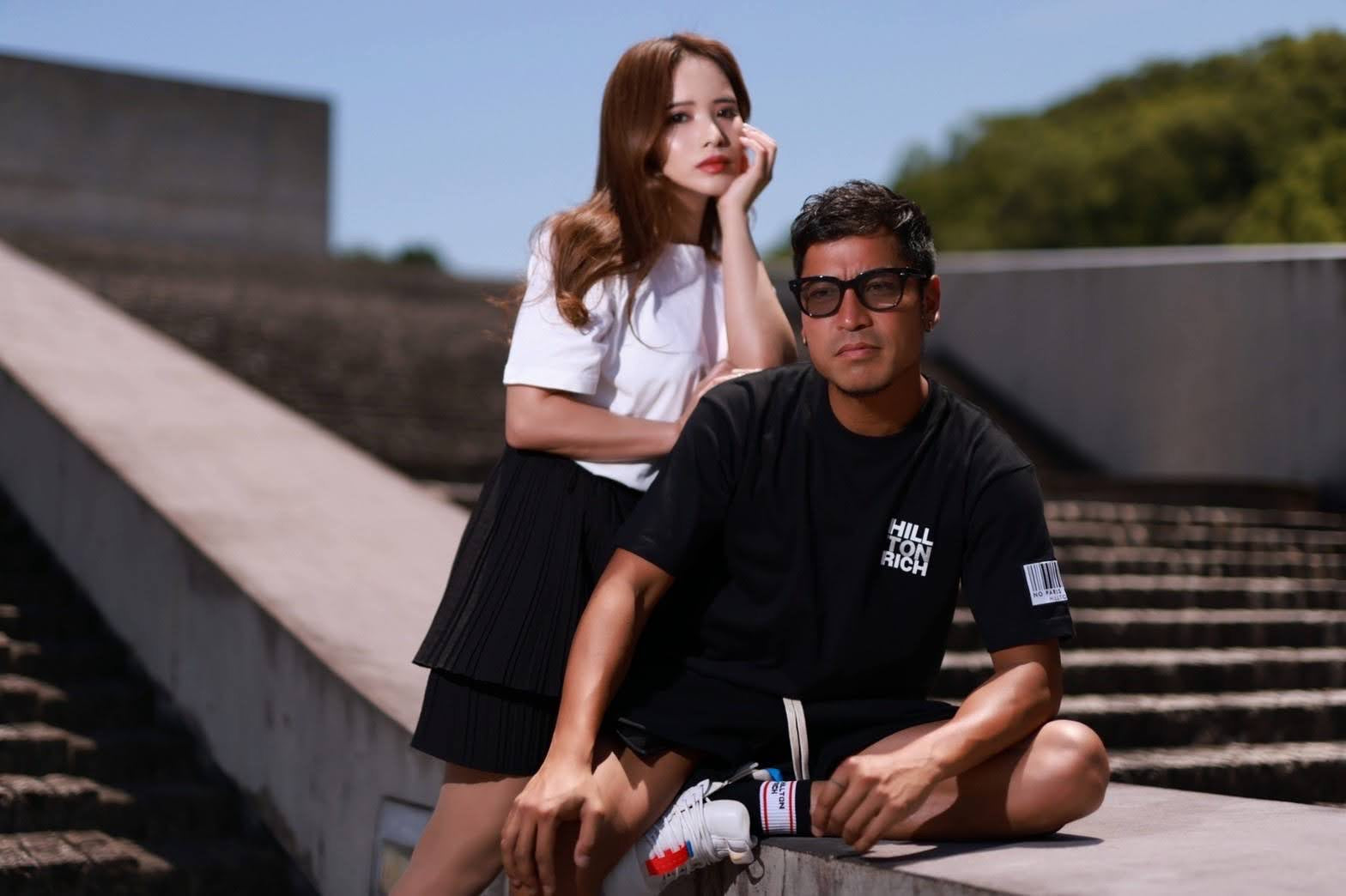 バックには薄いスクエアLOGOをたくさん配置。