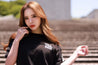 袖には大きいバーコードタグが目を引く1枚。今回は生地にもこだわって作っており、