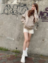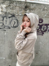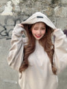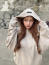 オーバーショルダーサイズの薄手プルオーバーパーカー。